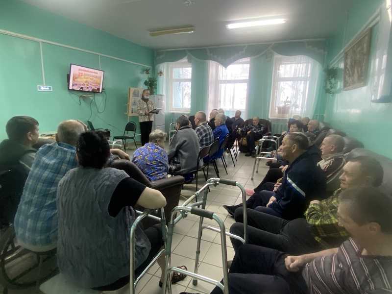 Этому событию был посвящен литературно-музыкальный набат «И помнит мир спасенный», который провели работники поселковой библиотеки для проживающих нашего дома-интерната.